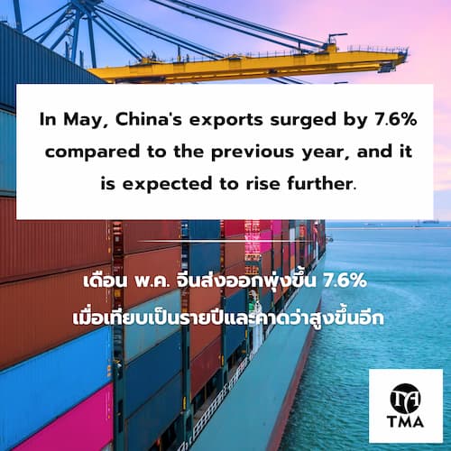 สำนักงานศุลกากรจีน (GAC) รายงานว่าในเดือนพค.ยอดส่งออกพุ้งขึ้น 7.6% เมื่อเทียบรายปีซึ่งดีกว่านักวิเคราะห์ได้โพสเอาไว้